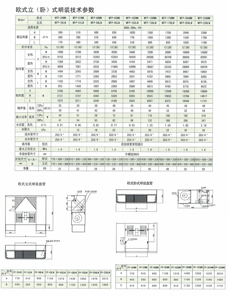 臥式明裝風機盤管