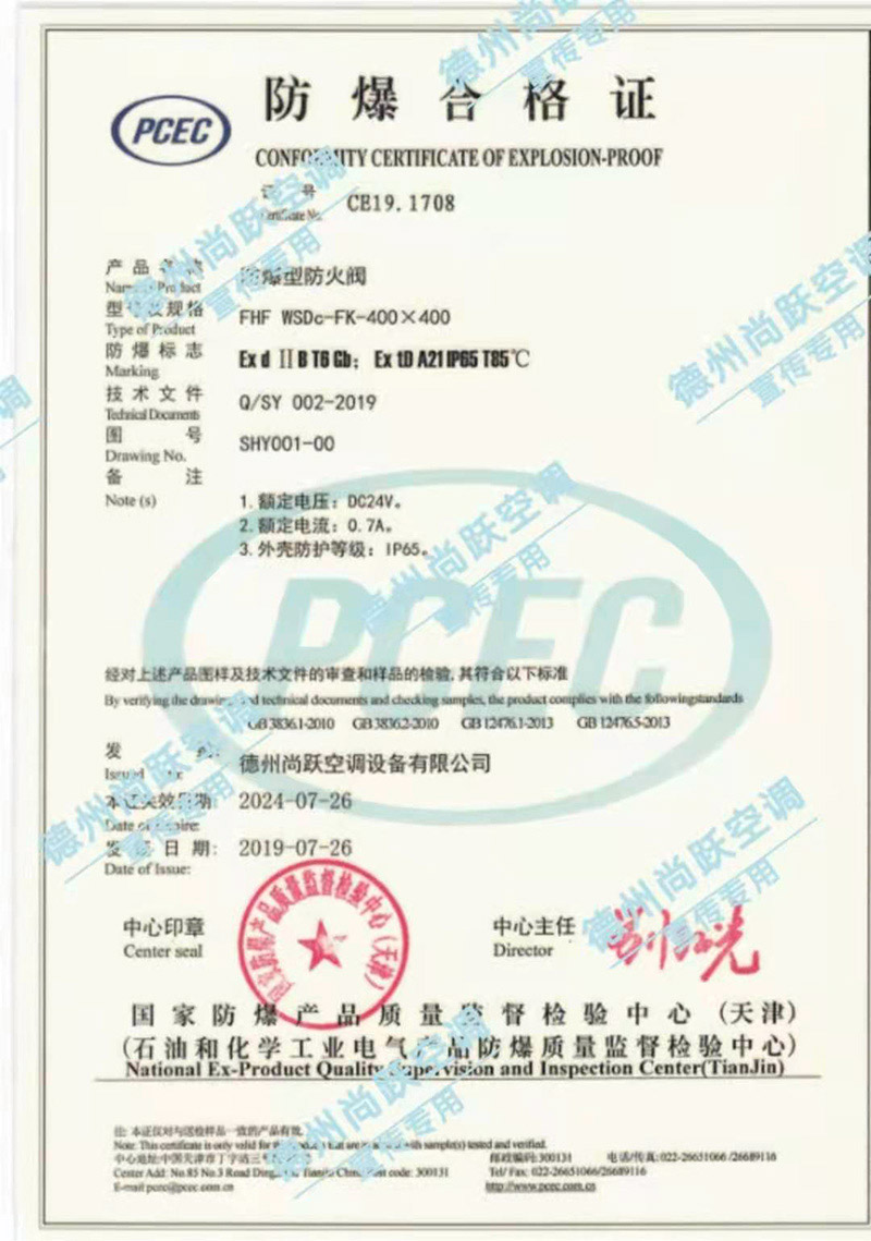防爆防火閥用于性氣體或蒸汽混合物的危險環(huán)境的工業(yè)建筑通風(fēng)、空調(diào)系統(tǒng)中,平時呈開啟狀態(tài),火災(zāi)時當(dāng)管道內(nèi)氣體溫度達到70℃時,易熔片熔斷,閥門在扭簧力作用下自動關(guān)閉,在一定時間內(nèi)能滿足耐火穩(wěn)定性和耐火完整性要求,起隔煙阻火作用的閥門。閥門關(guān)閉時,輸出關(guān)閉信號。