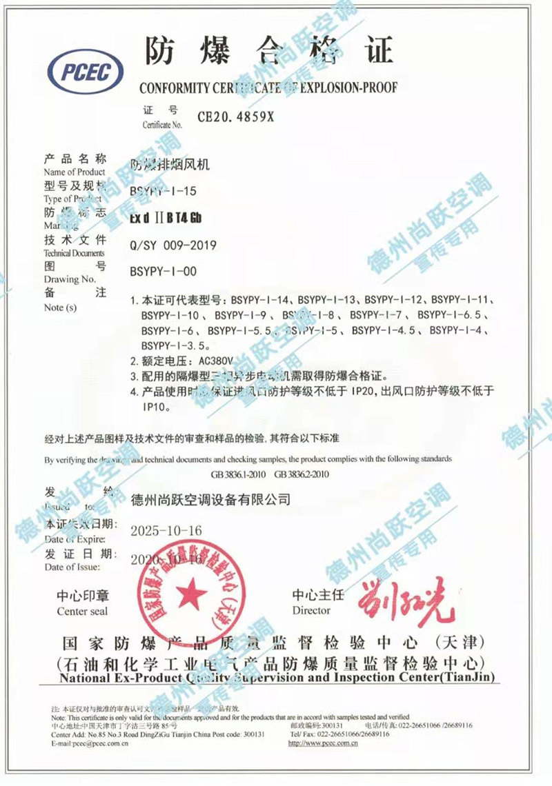 防爆軸流式消防排煙風機主要用于性氣體或蒸汽混合物的危險環(huán)境的工業(yè)建筑中,是廠礦企業(yè),石油化工等場所通風排煙的理想產(chǎn)品,經(jīng)過固定滅火和耐火構(gòu)件質(zhì)量監(jiān)督檢驗中心檢驗合格,并按照規(guī)定辦理CCCF證件,現(xiàn)已下證,可滿足客戶使用及驗收要求。